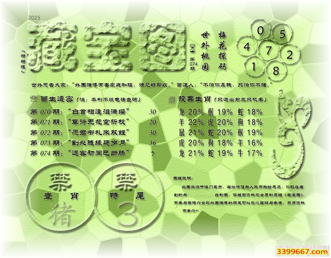 | 主题 :074期藏寶圖 新:烛烬香残帘半卷 老:远客初闻已断肠 禁:猪 禁:3尾 |