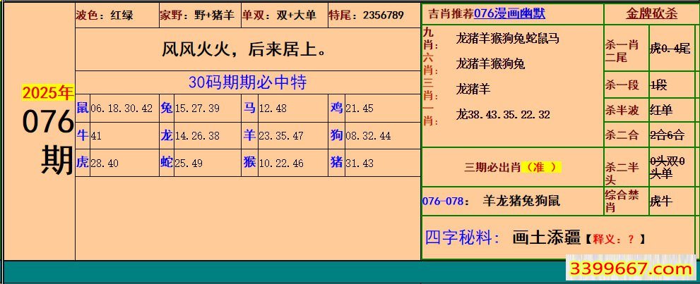 主题 :076期:小鱼儿30码期期中+幽默猜测 |