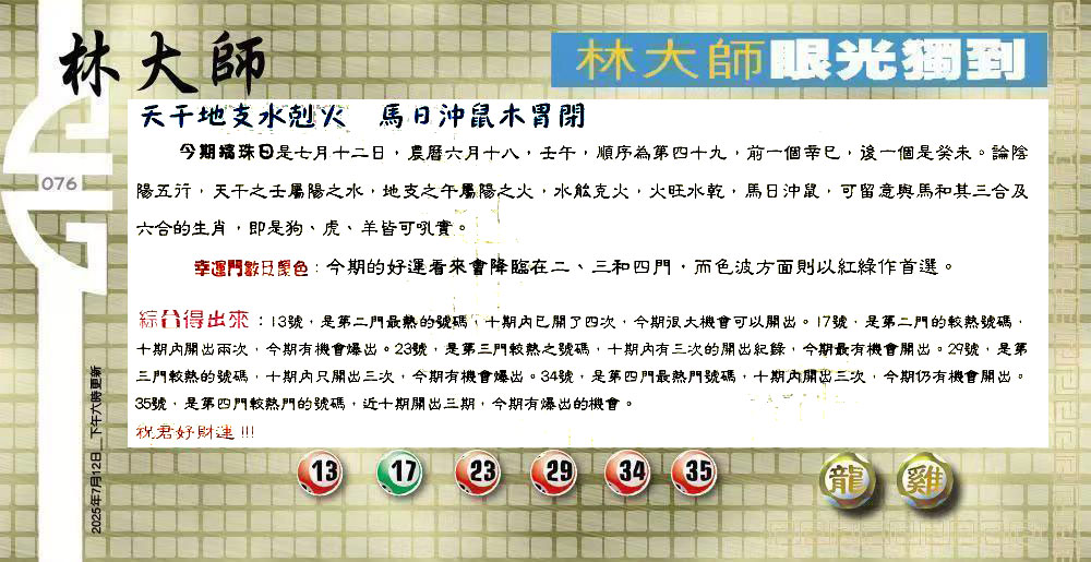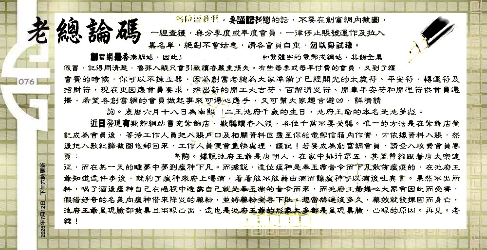 主题 :076期:六合皇金句/老总论码/萧公子/林大师/五行夺码/老总信箱截 |
