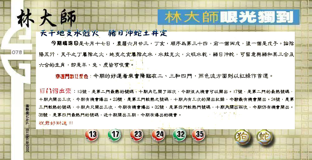 主题 :078期:六合皇金句/老总论码/萧公子/林大师/五行夺码/老总信箱截 |
