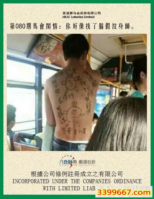 | 主题 :080期馬會閑情:你好像找了個假紋身師。 |