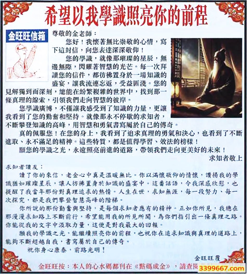 主题 :080期:金旺旺信箱彩民推荐→→《希望以我學識照亮你的前程》 |