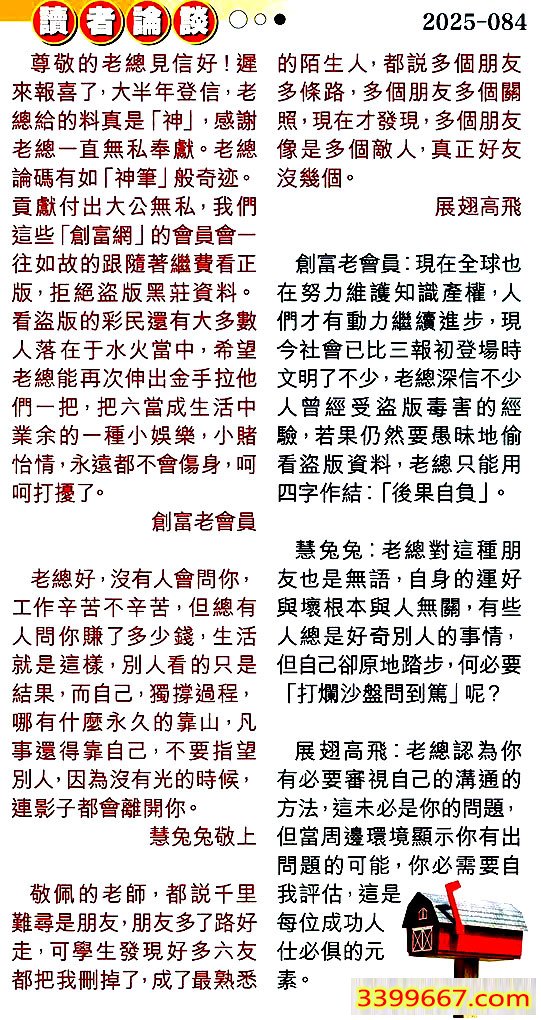 主题 :084期:彩民推荐〖貼信讀者論壇〗 |