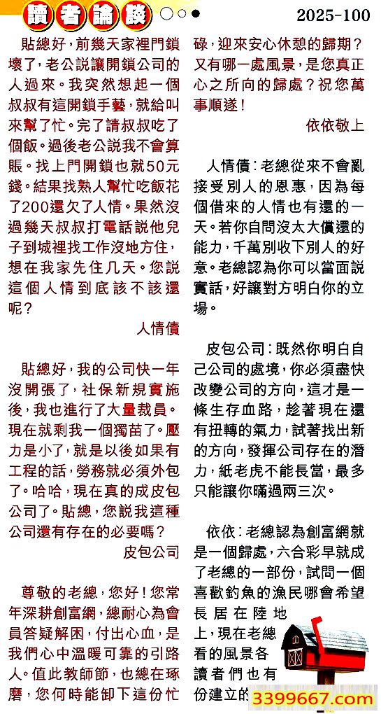 主题 :100期:彩民推荐〖貼信讀者論壇〗 |