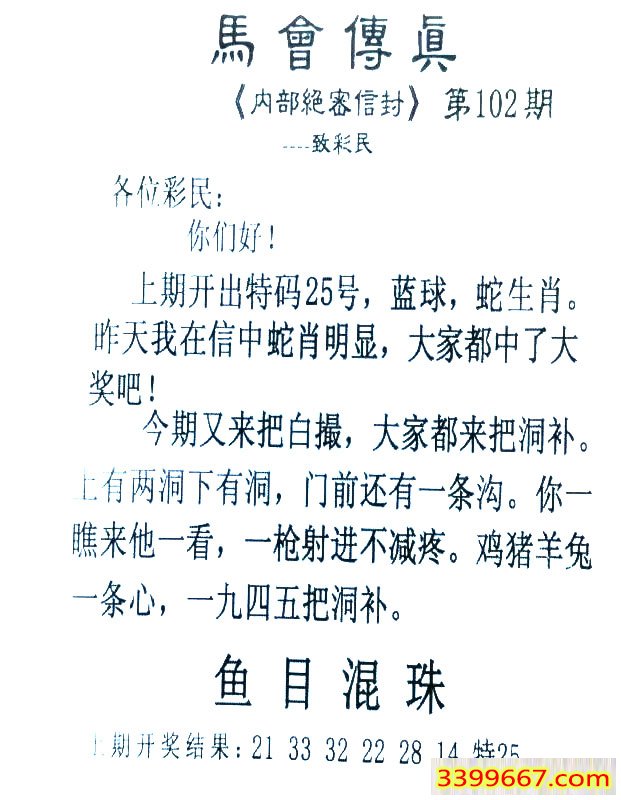 主题 :102期:首发推荐:≮馬會傳眞≯→(香港正版) |