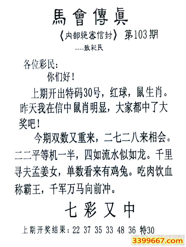 主题 :103期:首发推荐:≮馬會傳眞≯→(香港正版) |