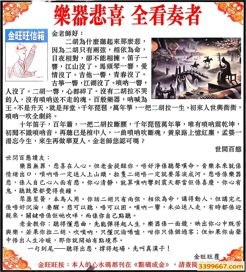 主题 :106期:金旺旺信箱彩民推荐→→《樂器悲喜 全看奏者》 |