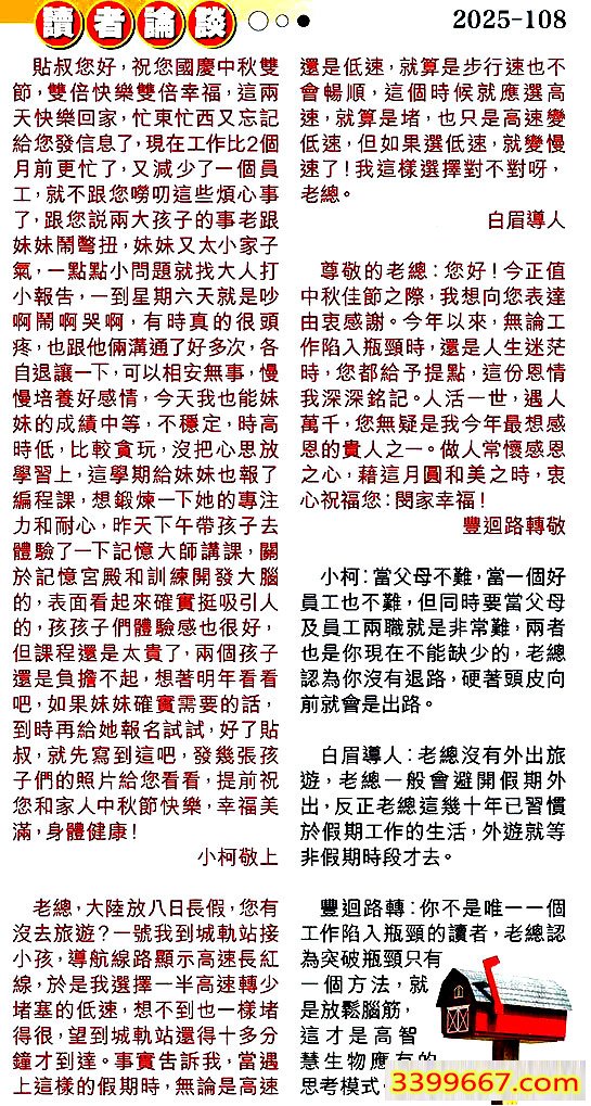 主题 :108期:彩民推荐〖貼信讀者論壇〗 |