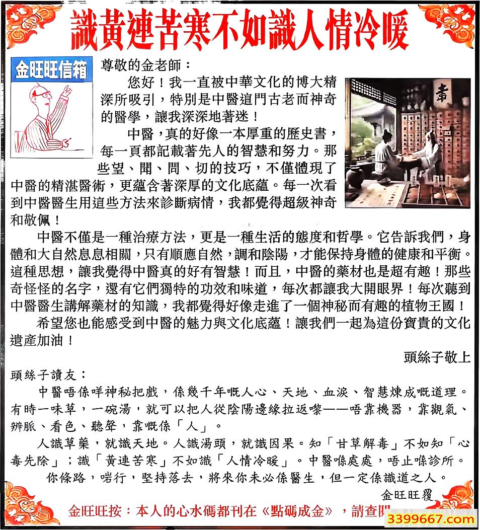 | 主题 :125期:金旺旺信箱彩民推荐→→《識黃連苦寒不如識人情冷暖》 |