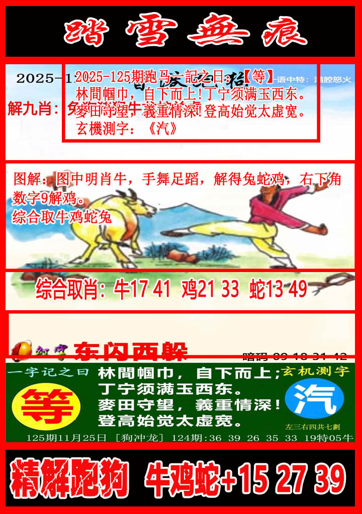 | 主题 :125期:【踏雪无痕】跑狗专解 |