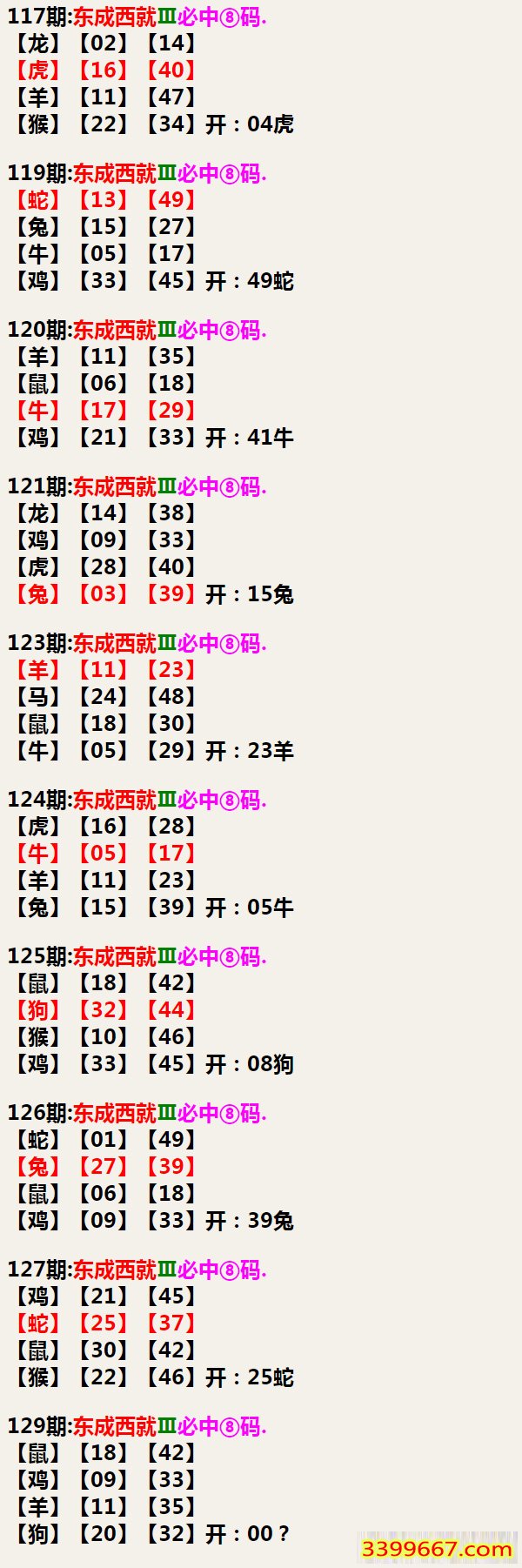 | 主题 :129期:东成西就Ⅲ必中⑧码 |