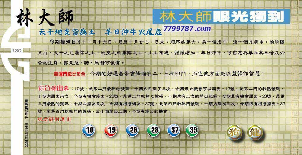 | 主题 :130期:六合皇金句/老总论码/萧公子/林大师/五行夺码/老总信箱截 |