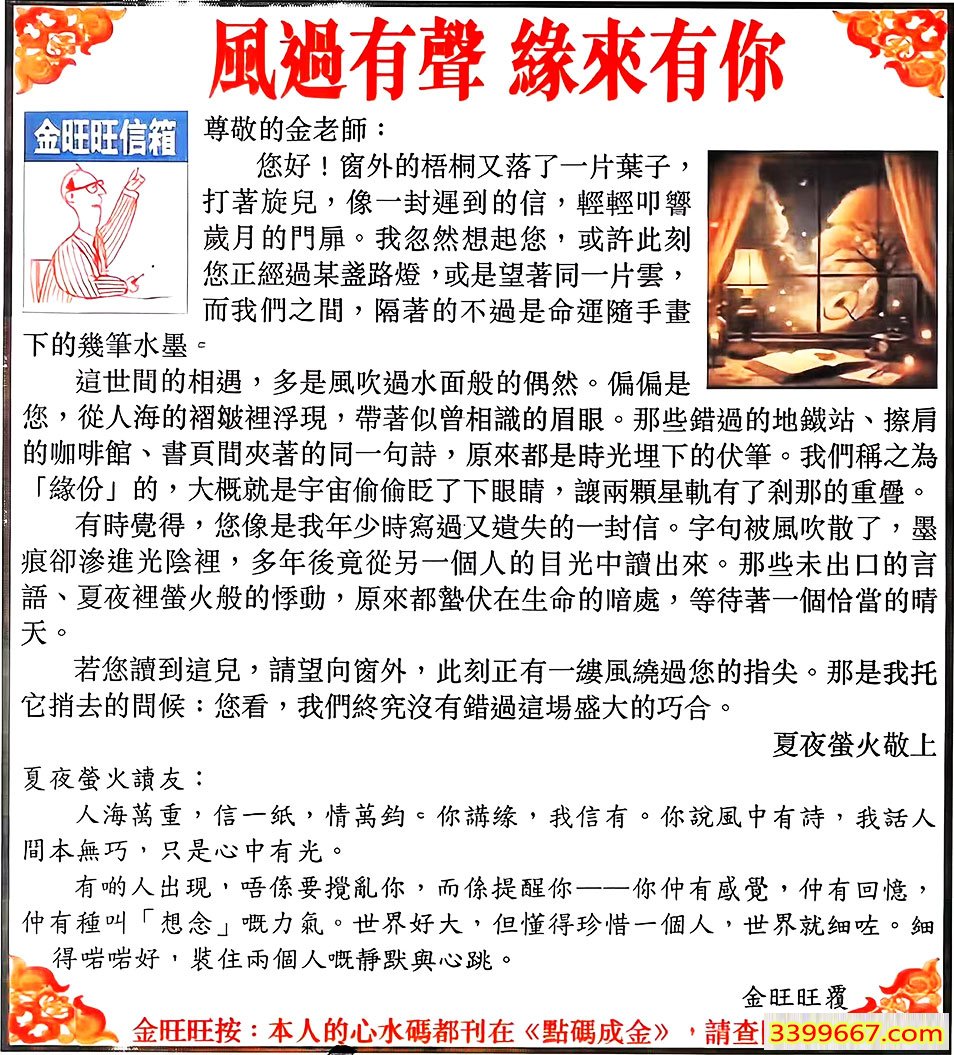 | 主题 :131期:金旺旺信箱彩民推荐→→《風過有聲 緣來有你》 |