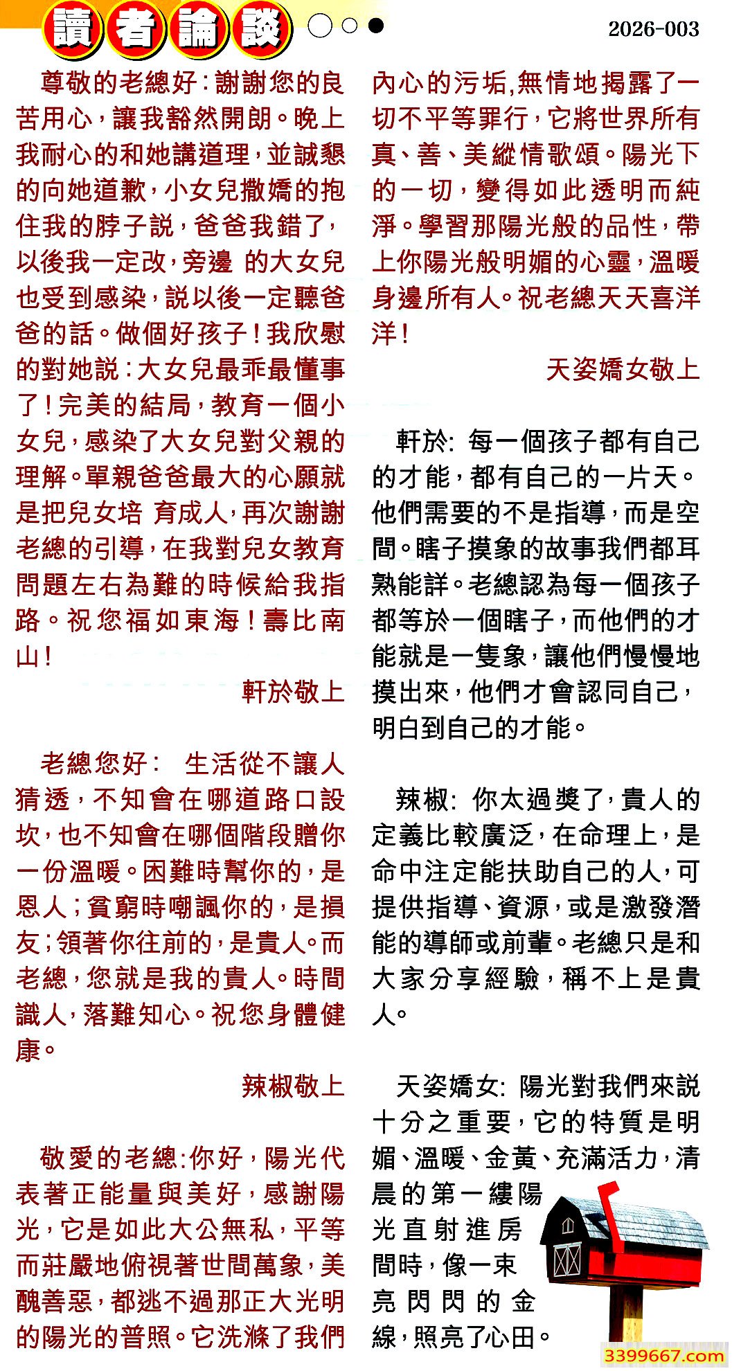 | 主题 :003期:彩民推荐〖貼信讀者論壇〗 |