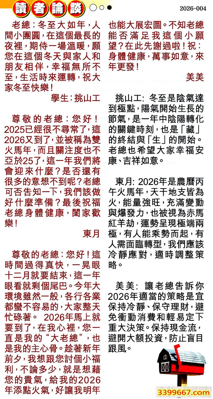 | 主题 :004期:彩民推荐〖貼信讀者論壇〗 |